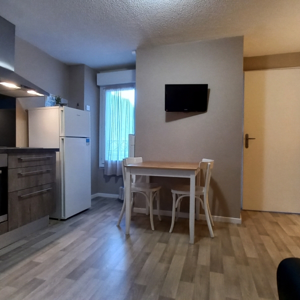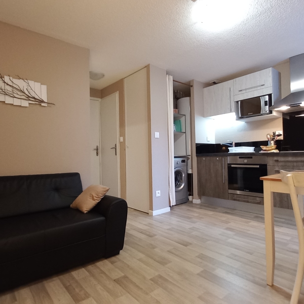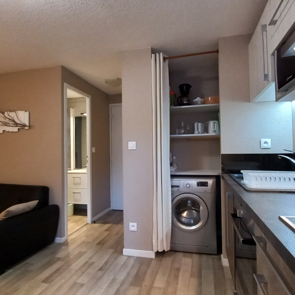 Cuisine entièrement équipée avec : frigo-congélateur, four électrique, four micro-ondes, hotte, lave-linge, 2 plaques induction, pas de lave vaisselle Pas de parking privé mais parkings gratuits dans tout le village - 2 arrêts minute dans la cour